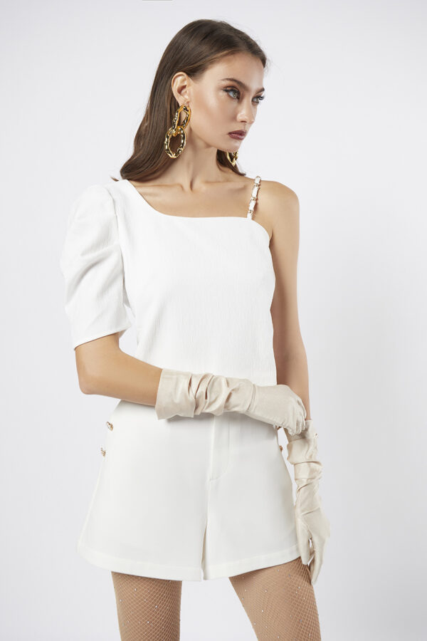 สายเดี่ยวเปิดไหล่แบรนด์ F.Fashion การออกแบบเปิดโชว์ช่วงไหล่และลายพิมพ์ดอกไม้ คลีเอทลุคสาวหวานที่แฝงไปด้วยความเซ็กซี่น่าสนใจ รายละเอียดดีไซน์แต่งขอบระบายช่วงอกและปลายแขนเสื้อเพิ่มกิมมิคเก๋ แมทช์กับกางเกงสีขาวขาบานอัพกลิ่นอายความเรียบหรู